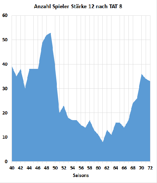 Nach der Formauswertung zum TAT 8 gab es insgesamt 33 (-1) Spieler der höchsten Stärkeklasse 12.